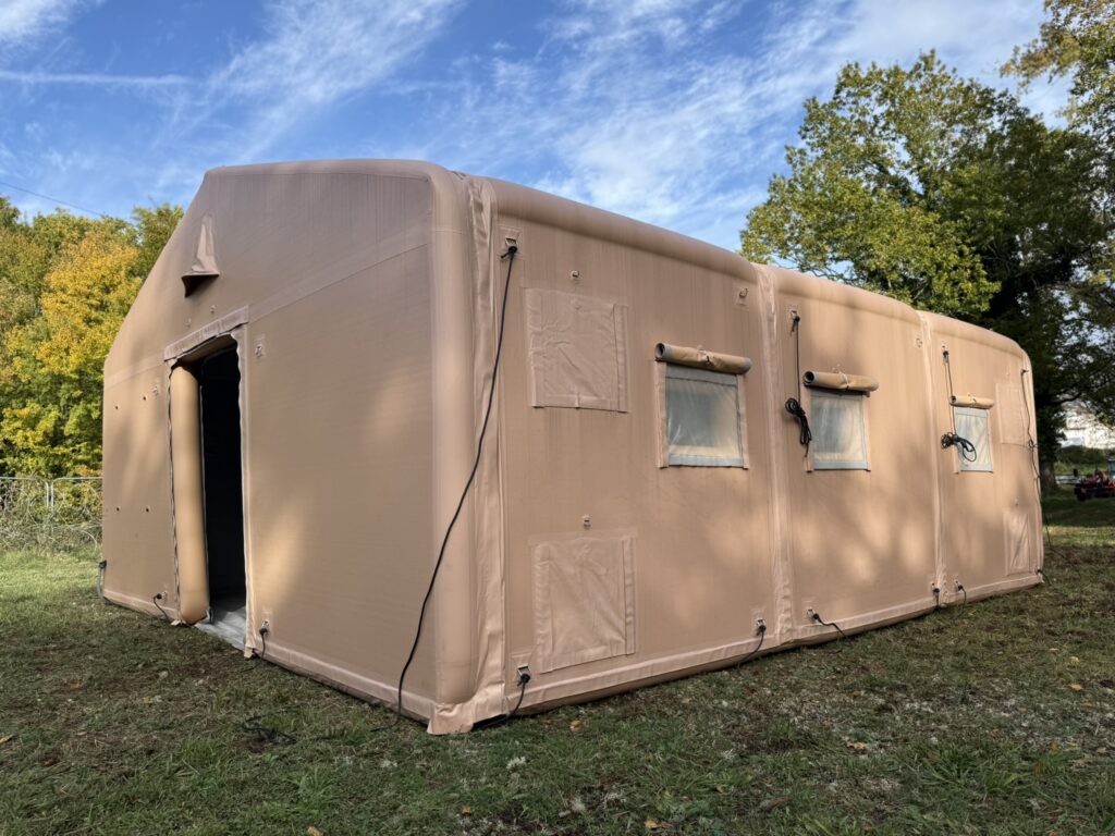 Unique en son genre, notre abri DWS en double paroi rigide gonflable allie robustesse et confort pour des déploiements tactiques à moyen et long terme. Fixé au sol en quelques minutes, cet abri est idéal pour les camps militaires, les hôpitaux de campagne ou les centres d’hébergement d’urgence.