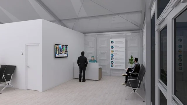 La conception de notre centre de vaccination tient compte des protocoles de distanciation sociale, ainsi que des bonnes conditions de travail des professionnels de santé. Pour garantir de bonnes conditions de travail, nos centres de vaccination disposent également de bureaux et d’une cantine, et seront équipés d’un système de contrôle de la température ambiante. L’installation peut être livrée clé en main, y compris les équipements et l’ameublement.