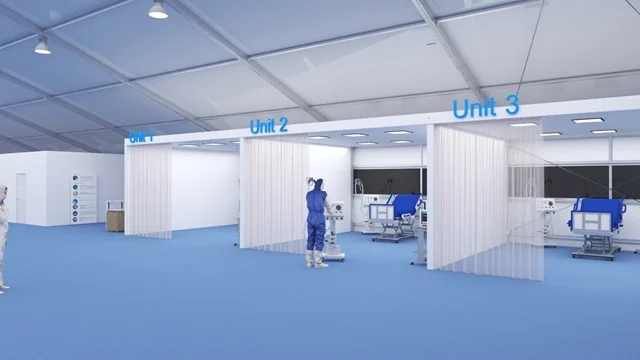 Vous devez créer rapidement un environnement sûr pour de nouveaux patients ? Nous pouvons vous aider, en construisant des services hospitaliers d’urgence et des tentes de quarantaine dans un délai très court.